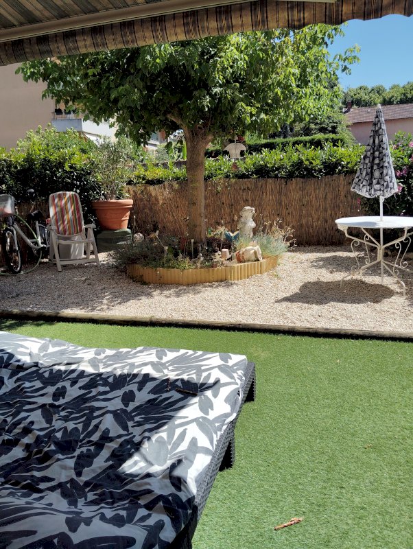 Ne manquez pas cet appartement traversant bénéficiant de deux rez de jardin, l'un côté Sud de 46 m² où donnent le grand salon (climatisé) et une chambre, l'autre côté Nord de 97 m² où donnent la cuisine et les deux autres chambres.