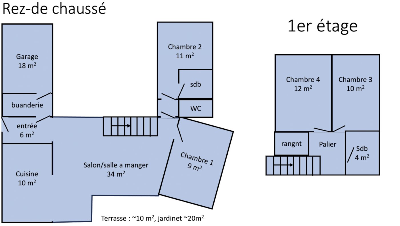 Appartement de 107 m² composé au rez-de-chaussée, d’une cuisine ouverte sur un séjour-salle à manger qui donne directement sur une terrasse de 10 m² ombragée et d’un jardinet privatif. Vous trouverez également à ce niveau 2 chambres, 1 salle de bain et 1 WC.