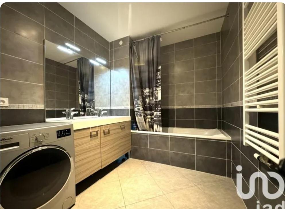 cuisine équipée ouverte sur séjours, 2 chambres, salle de bain avec double vasque et sèche serviettes, un WC séparé.