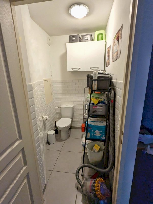 WC séparés avec grands rangements.