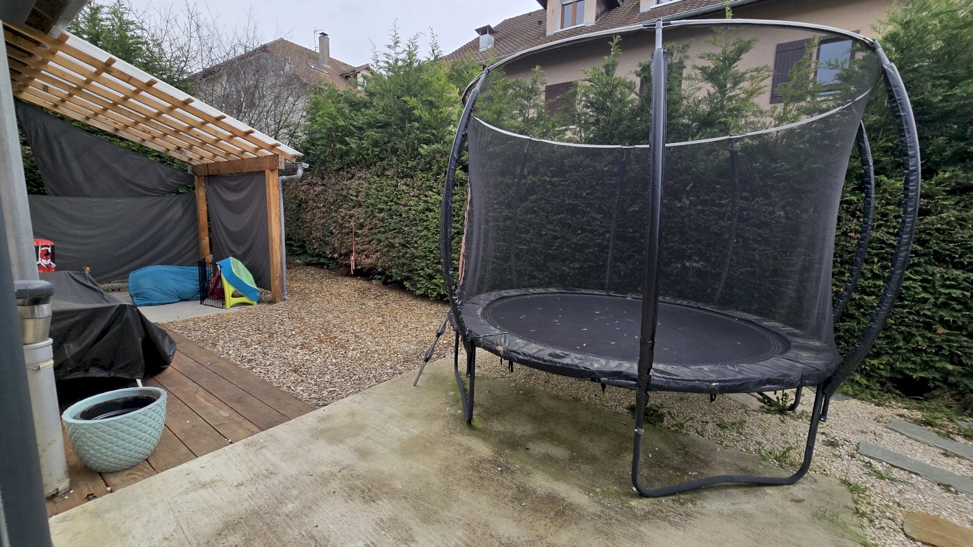 Maison entouré de quelques immeuble ce qui engendre du vis vis, mais principalement au niveau de parking, l'intérieur de la maison et la terrasse reste au maximum intime grâce au brise vue.