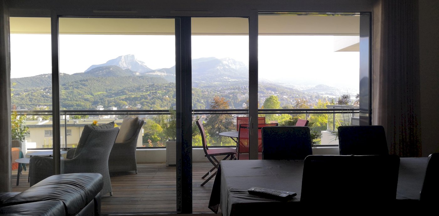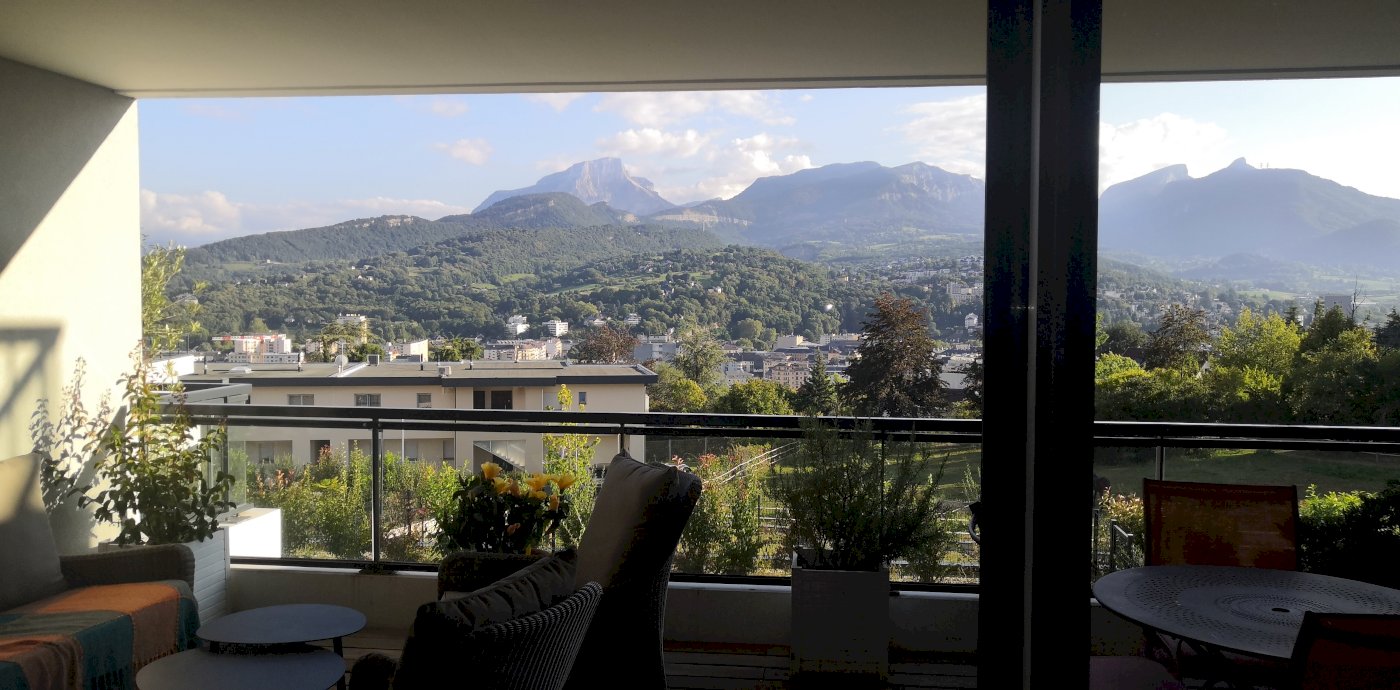 A Chambéry, Quartier résidentiel des Monts, appartement T5 de 107m² habitables au 1er étage dans la résidence prisée des Monts de Belladonna. Terrasse de 20m² au Sud avec vue magnifique sur le Granier, la Chartreuse et la chaîne de Belledonne, balcon au Nord de 11m² donnant sur un bois préservé. Grande cave, garage avec porte automatique et parking privatif couvert équipé d’une borne de recharge pour véhicule électrique (2ème parking couvert possible).