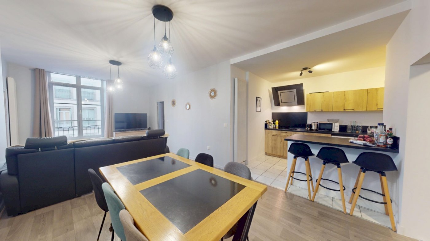 - 1 grande pièce à vivre avec coin Salon / Salle à Manger et Cuisine ouverte (refaite à neuf).