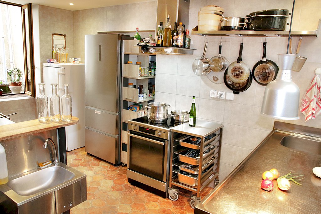 Chauffage principal poêle à bois neuf 12 KW, suffit à chauffer excellement l'ensemble du volume avec 4 à 5 stères pour une année. Pas de garage (mais nombreuses possibilités en toute proximité), pas d'extérieur ( mais de plein pied donnant sur ruelle piétonne).