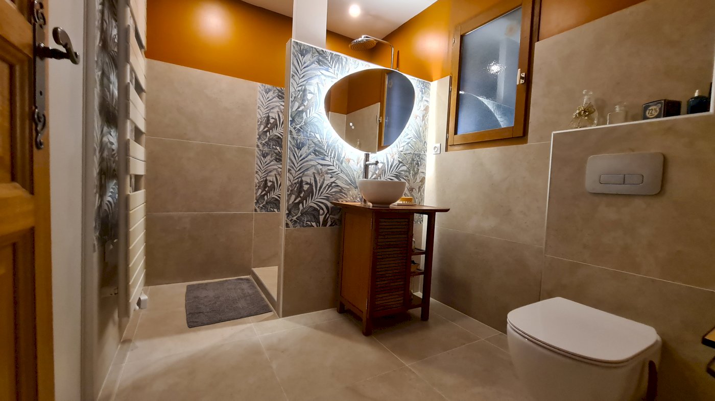 • À l'étage climatisé : trois chambres accueillantes avec placards, refaites récemment, une salle de douche refaite en 2025 avec toilettes et placard.