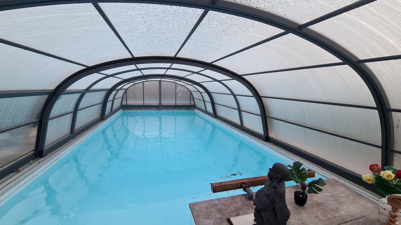Le terrain est plat et arboré, composé de différents lieux dont un potager en permaculture. Ce bien offre un cadre idéal pour se détendre avec plusieurs terrasses et sa piscine couverte sécurisée pour laisser les enfants s'épanouir dans le jardin et est sans vis-à-vis.