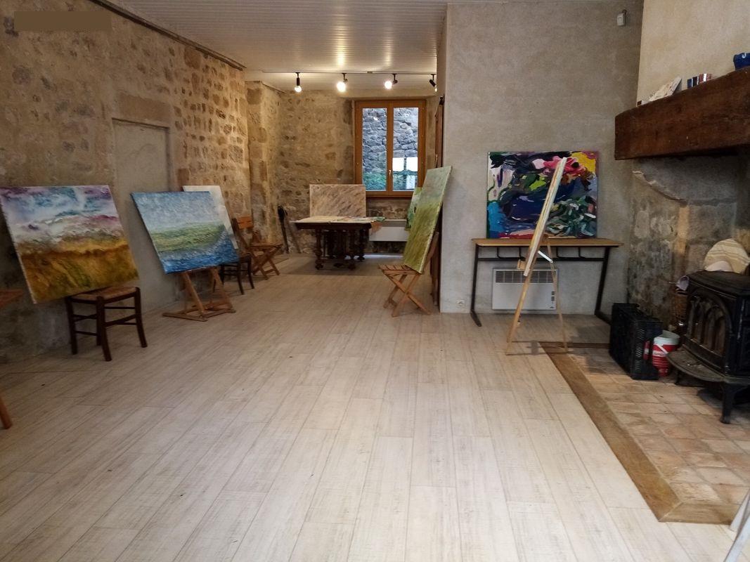 Elle est composée de : au niveau RDC : 1 local galerie de 80m², en 2 espaces dont un surélevé par 3 marches. Murs pierres apparentes, 2 portes-fenêtres ouvrant sur 2 rues adjacentes + 1 fenetre et 1 porte vitree ouvrant une cour/terrasse pavée. Equipement : un espace cheminee en pierre abritant un poêle (en fonte, de marque, à bûches) très peu servi. Parquet flottant sur dalles isolantes de 16cm. Toutes huisseries triple vitrage récents (factures)