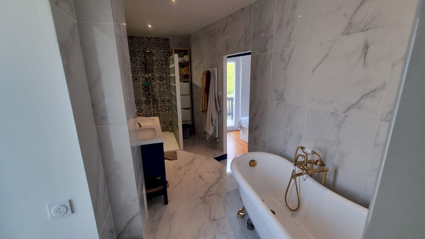 • Terrasse en bois éclairée de 50 m² et piscine 6 x 4 m pour profiter des beaux jours.