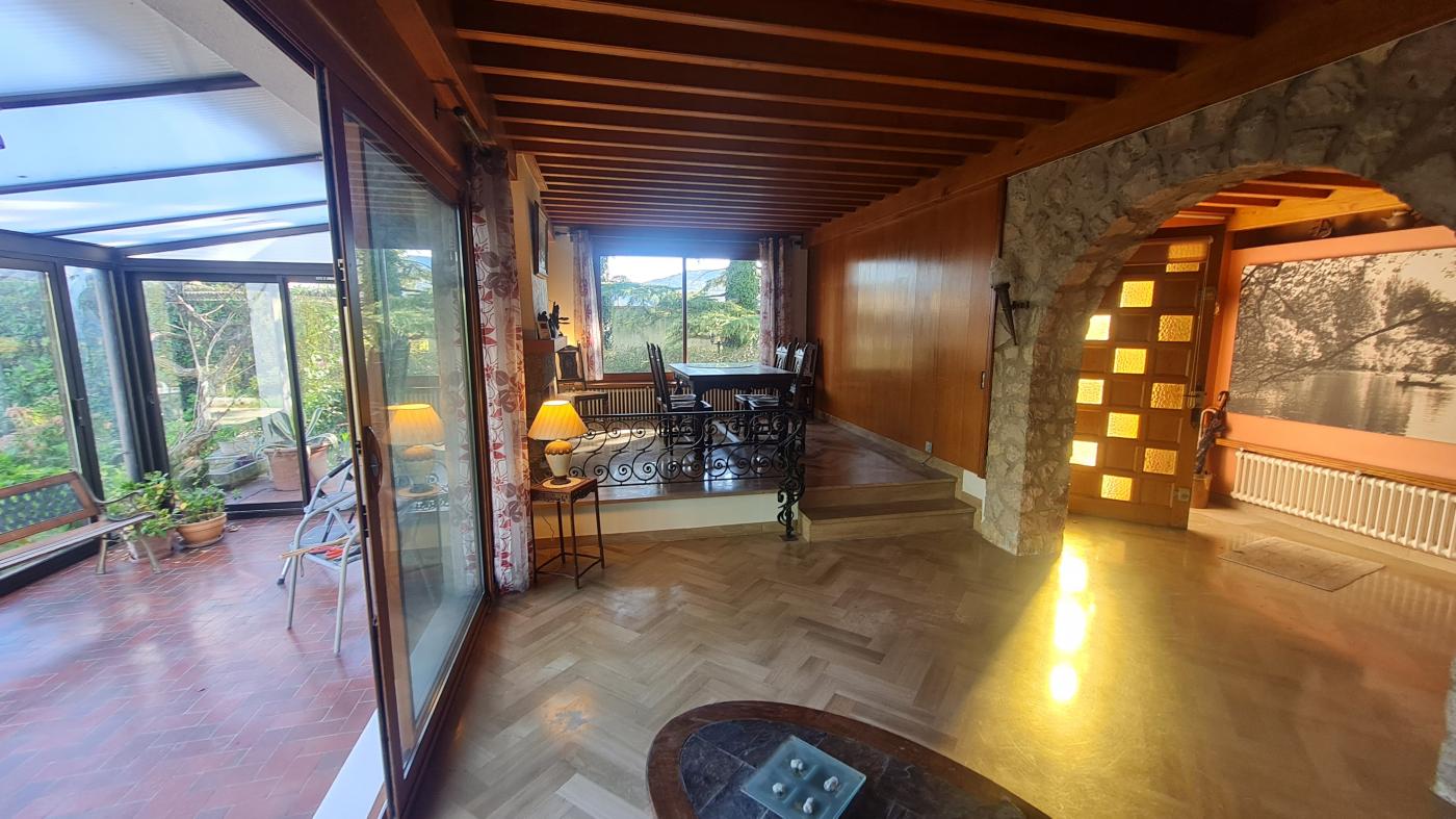 Maison de 100 m² avec grand sous-sol. Elle se compose d’une Entrée/Salon/SAM de 35 m² baigné de lumière par ses grandes ouvertures avec une hauteur sous plafond (en chêne à la française) de 2.85 m et un sol en marbre aspect bois posé en chevron / une cheminée et une grande véranda attenante de 17 m² occultée avec un store électrique. Salle d’eau avec douche italienne et toilette séparée. Trois chambres (12 / 12 / 11 m²) avec pour chacune un grand placard intégré, dont deux ont un accès extérieur sur une terrasse. Une cuisine de 13 m² (qui peut très facilement être ouverte sur le Salon / SAM) avec accès extérieur sur une autre terrasse avec store électrique. Toutes les huisseries de qualité sont récentes (double vitrage) avec volets roulants électriques. Pour compléter il y a un grand sous-sol de 50 m² comprenant un garage et deux caves.