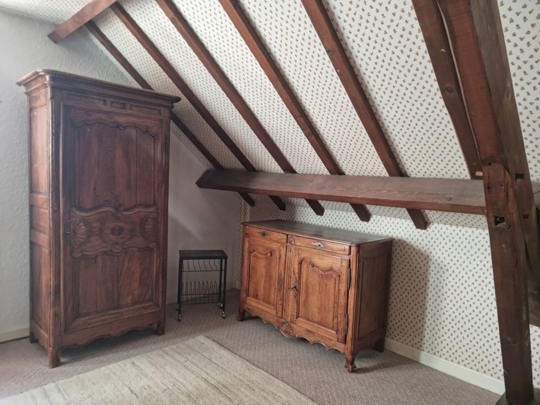 Le deuxième étage vous séduira avec un vaste bureau mansardé de 27 m², équipé de placards et de rangements, transformable en chambre ou salle de jeux. Vous y trouverez également une chambre de 10 m², une salle de bain de 3 m² avec baignoire et WC avec placards, et une pièce débarras de 17 m² utilisable en atelier.