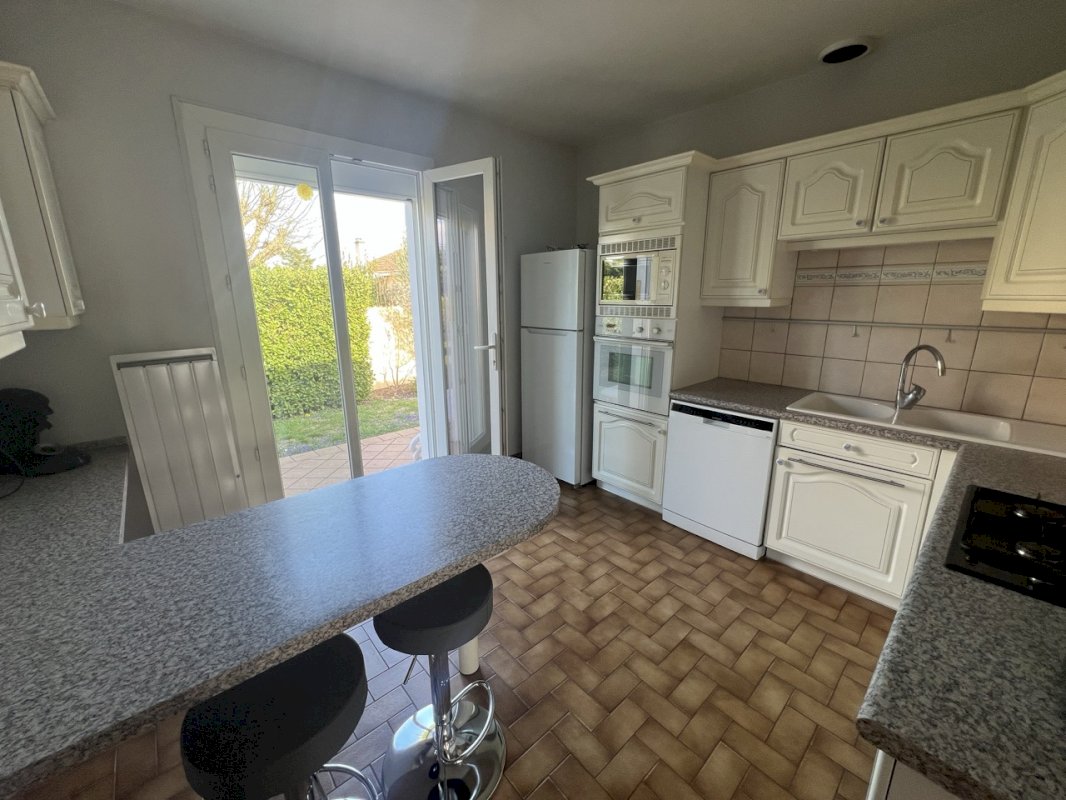 Agréable et lumineuse, elle dispose d'un hall d'entrée avec placards aménagés desservant une très jolie pièce de vie exposée Sud/Est avec son espace salle à manger et salon disposant d’une cheminée, d’une cuisine indépendante entièrement équipée donnant sur une grande terrasse.