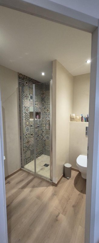 • Salle de bain ouverte (baignoire + douche), séparée par une verrière