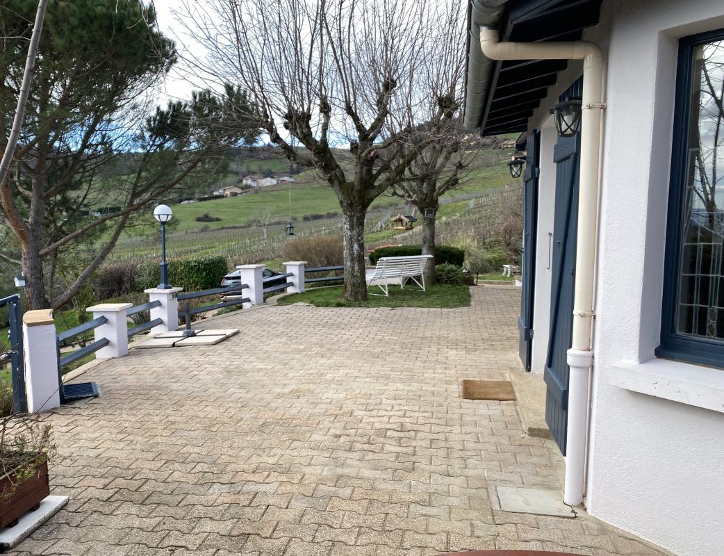 - Grandes terrasses orientées sud et ouest avec magnifique vue à 180° allant des Alpes aux vignobles locaux en passant par les Monts du Lyonnais.