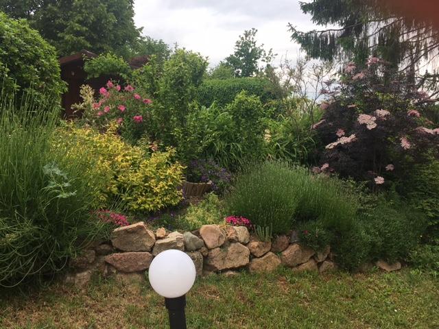 - Grands arbres (chênes, pin, tilleuls, cyprès, érables pourpres) et arbres fruitiers + arbustes et vivaces.