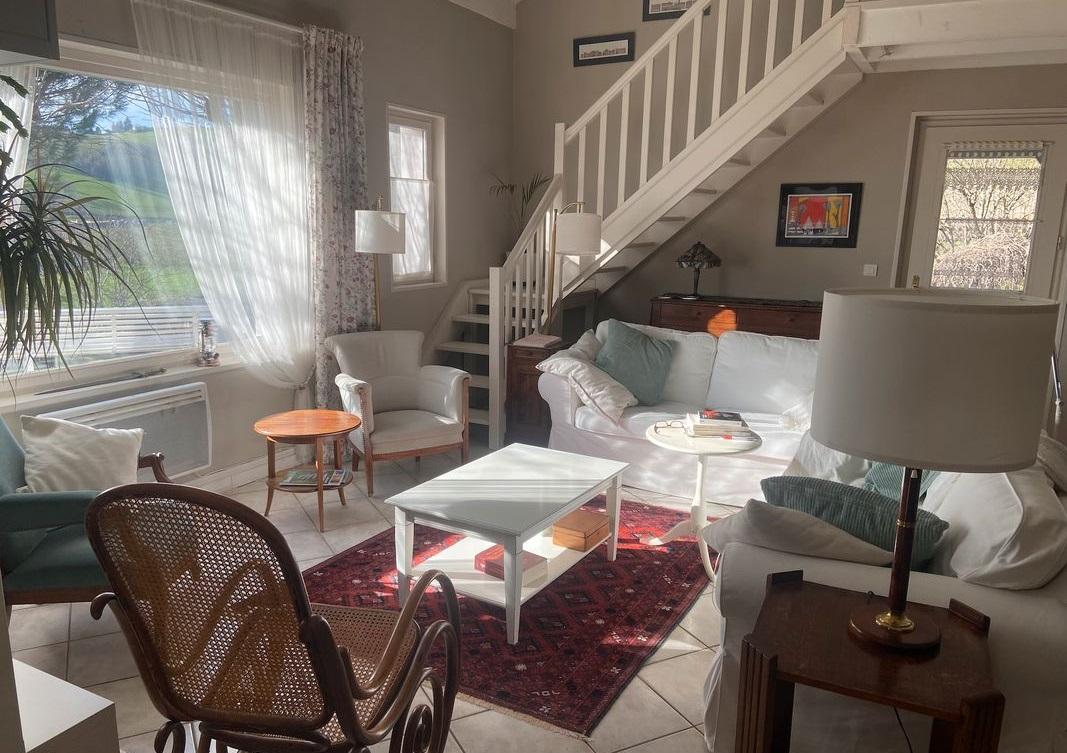 - Grand double séjour de 58 m², orienté sud et ouest avec grandes baies vitrées donnant sur le bourg de Dareizé et des Monts du Lyonnais.