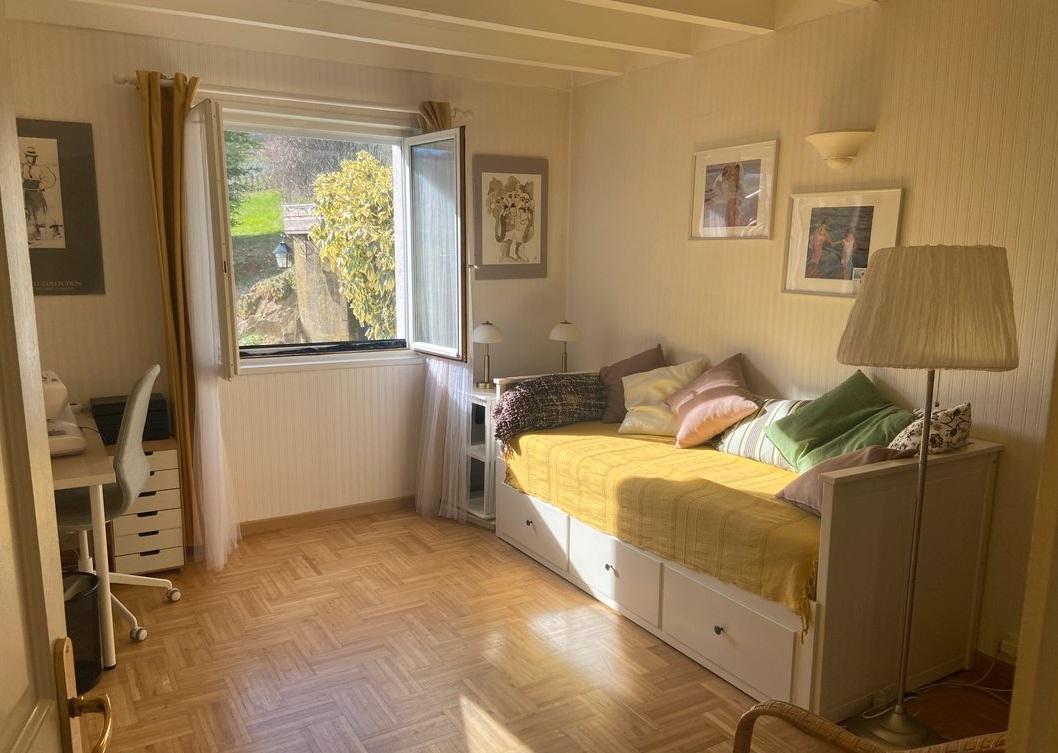- La 3e chambre, une pièce de 20 m² actuellement utilisée comme bureau/bibliothèque, donnant également sur la terrasse par une porte-fenêtre, est située entre le séjour et la chambre précédente.