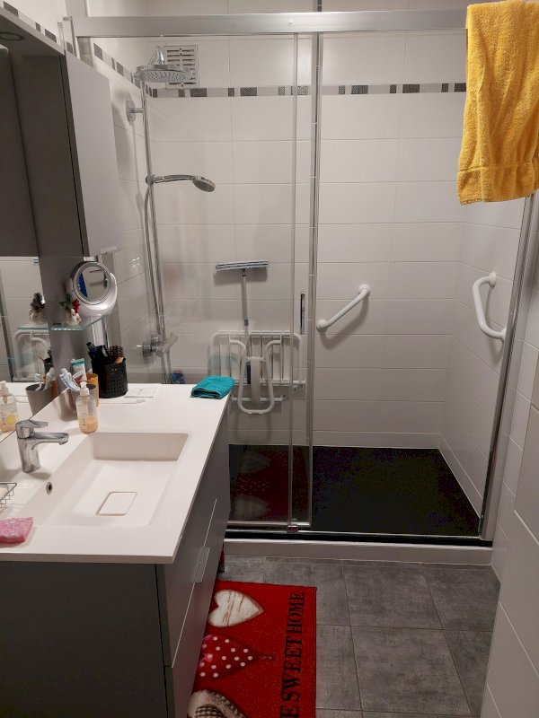 Dès l’entrée un grand placard fait face à un cellier nous continuons avec une salle d’eau moderne après nous trouvons des toilettes indépendantes.