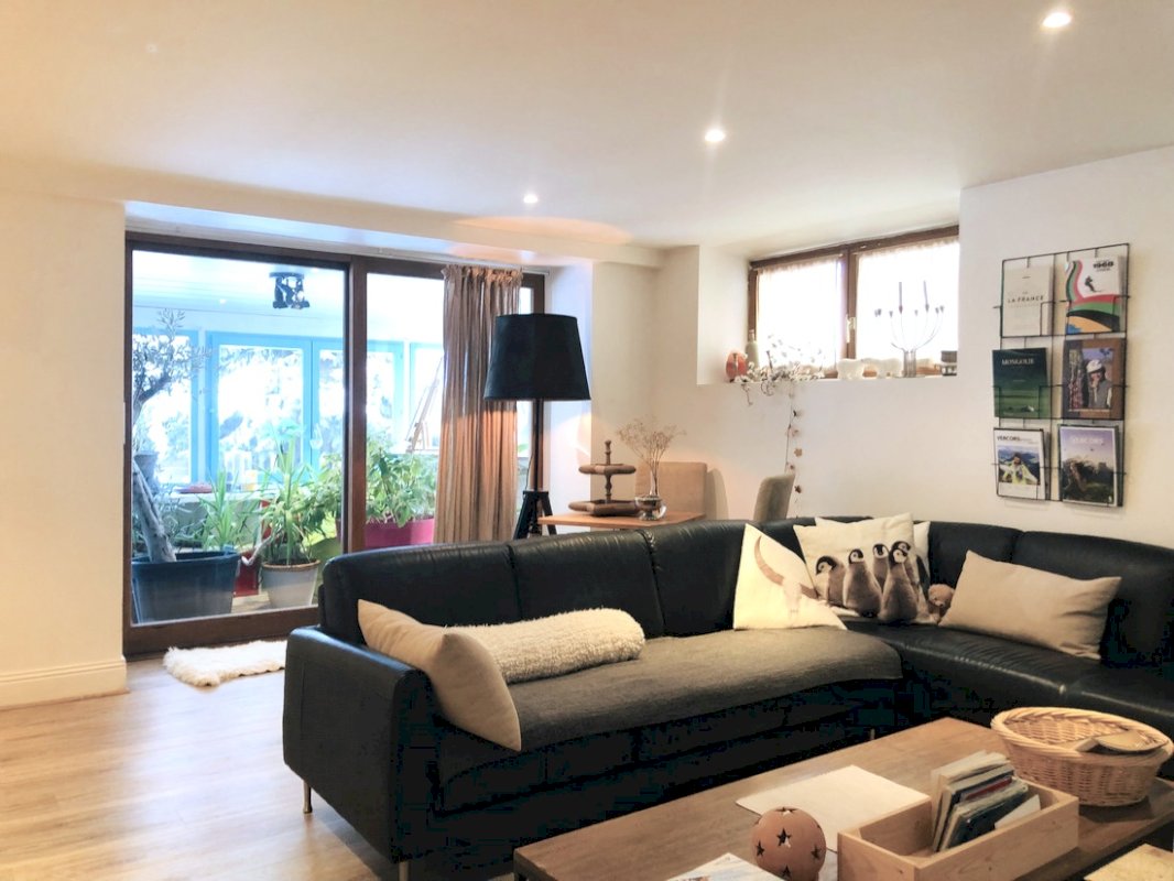 Au RdC, l’espace se compose d’une cuisine équipée, d’un salon (40 m²), d’une véranda (14 m²) donnant accès directement au jardin, d’une buanderie avec WC, ballon ECS neuf/régulation chauffage urbain et un accès au sous-sol de 100 m². Dans les annexes, un vestiaire, un bureau (10 m²) et un grand garage (50 m²).