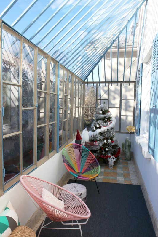 Exposition plein sud avec vue sur la chaine du Vercors, elle dispose d’une terrasse ombragée (70 m²) et de 3 places de parkings.