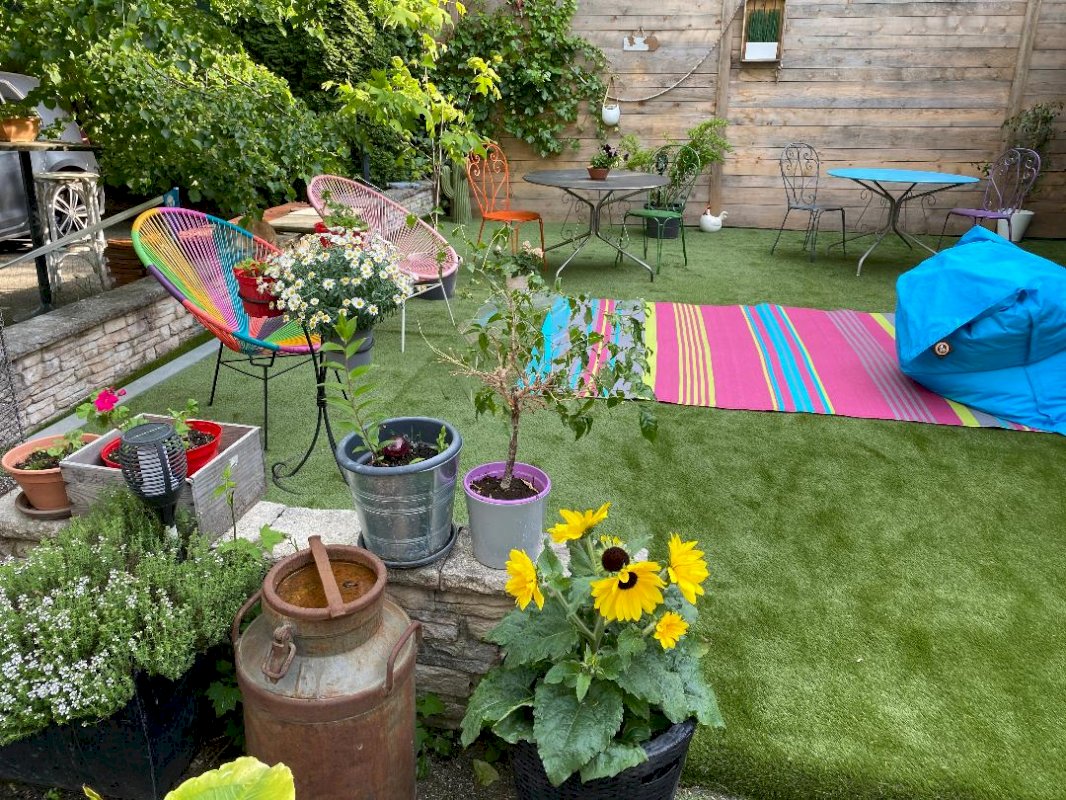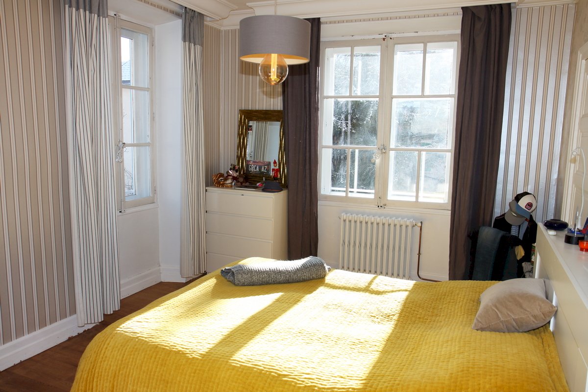 Grande maison bourgeoise (280m²), située au centre du village, sur 4 niveaux, à 100m des commerces et à 20m de la rue, dans un quartier très calme, sur un terrain de 477m² arboré.