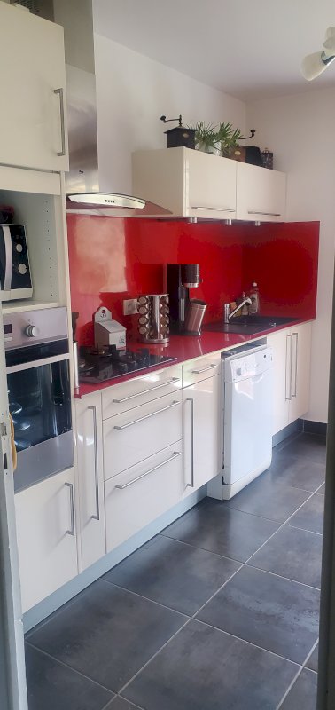 °A l'étage d'une grande pièce de vie avec insert, véranda et balcon, une cuisine équipée indépendante, une salle d'eau, un wc séparé et trois chambres.