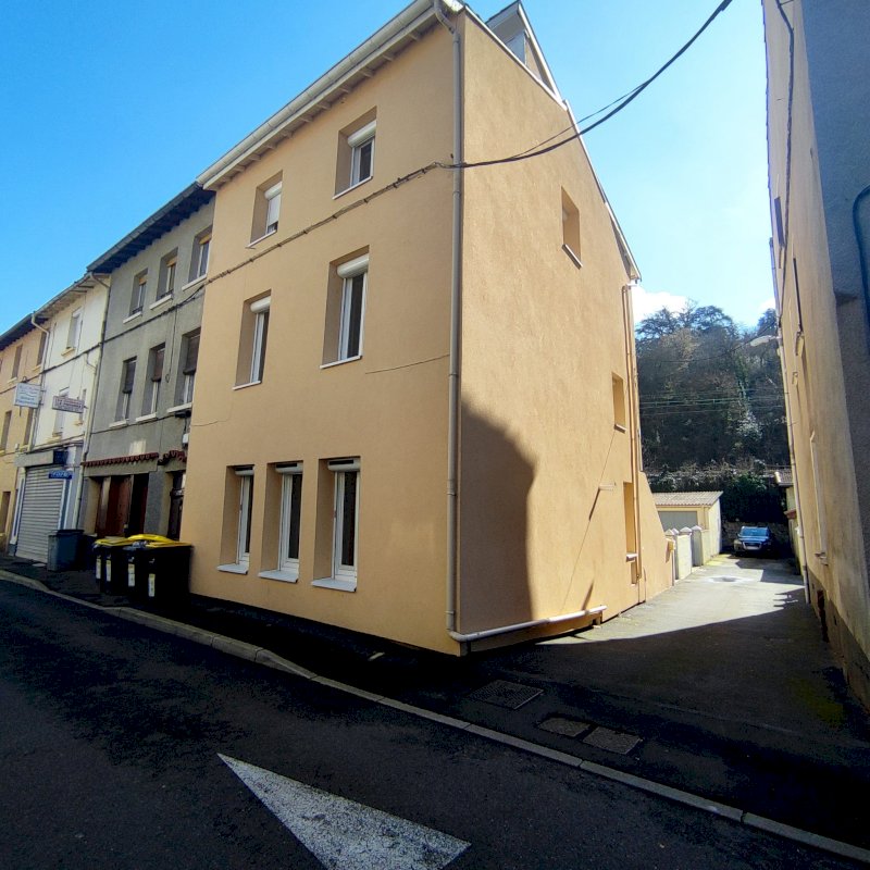 Maison de ville composée de 2 appartements (T5 et T2) de 145 m² au total située à Rive-de-Gier (42800) à 30 mn de Lyon (69) et à 20 mn de Saint-Etienne (42).