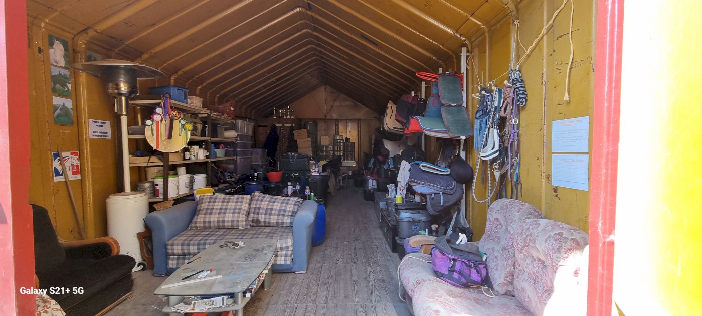 Pour le confort de vos équidés et le vôtre, un bâtiment en L ouvert avec d'un côté la préparation des équidés et soins, et de l'autre une double douche, un local avec arrivée d’eau, électricité prévue pour création d’un WC extérieur.