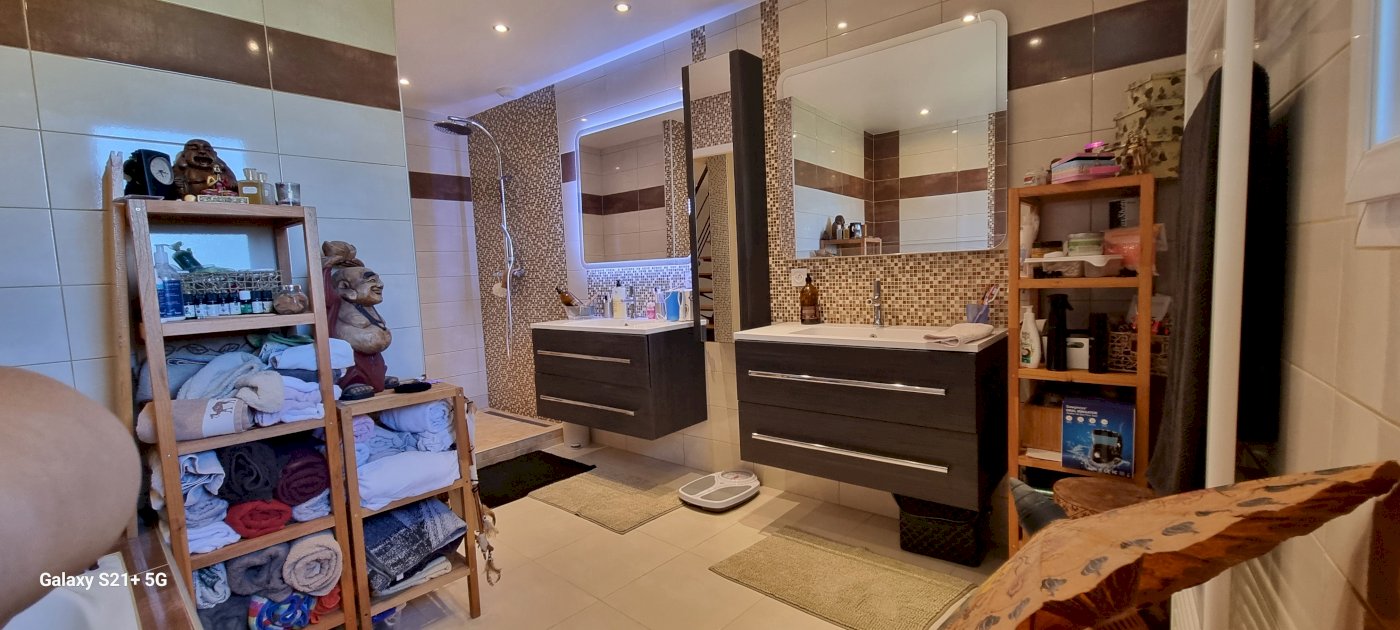 Chauffage chaudière gaz avec ballon intégré, un chauffe-eau supplémentaire (électrique ou gaz), 2 radiateurs électrique à économie d'énergie au RDC, 3 chambres équipées de pompes à chaleur réversibles. Grand sèche serviettes dans salle de bain (électrique ou gaz).