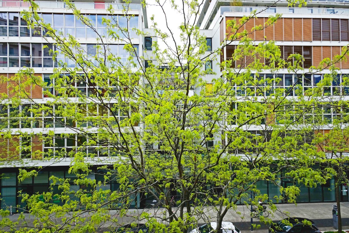 • Cuisine équipée avec plan de travail en bois massif chêne, donnant sur un petit balcon d’une cour intérieur