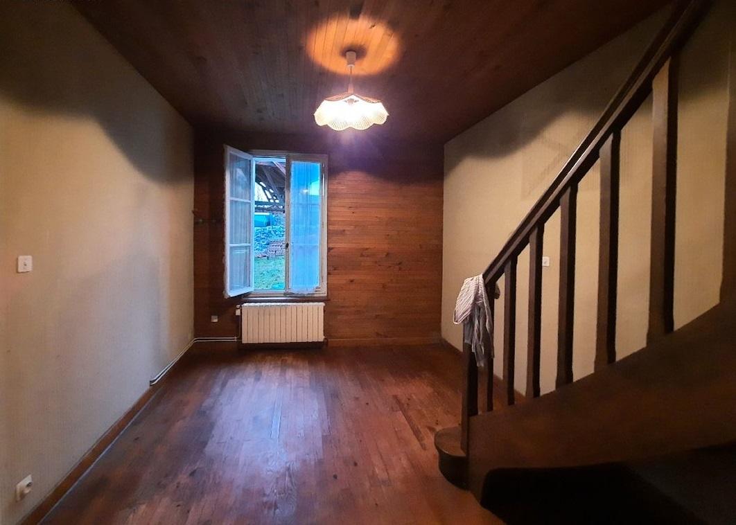 RDC: cuisine, salon, pièce/ bureau et WC avec baignoire sabot.