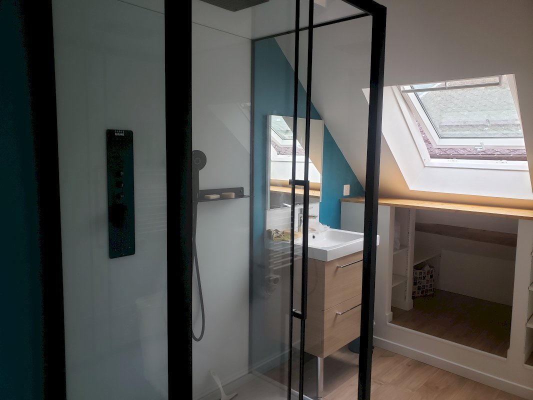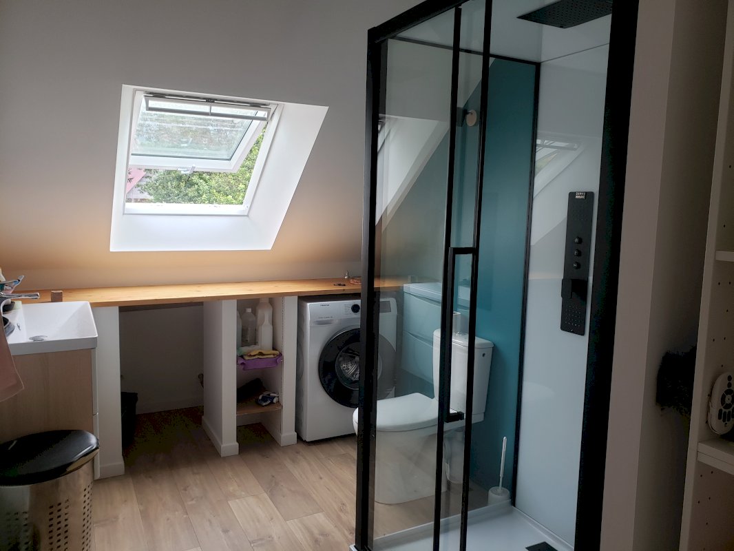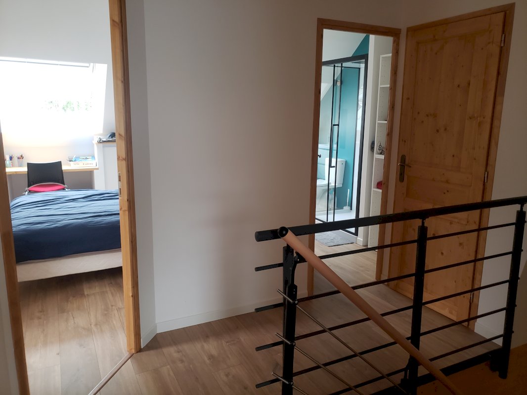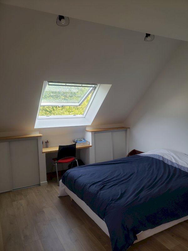 Au premier étage une suite parentale avec sa salle de bain et WC ainsi qu'une deuxième chambre spacieuse avec salle de bains séparée. Nombreux rangements intégrés. Très lumineuses avec leur grands velux et fenêtres.