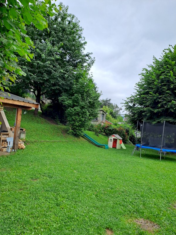 A l'extérieur, un jardin de 1 000 m² partagé (et privatisable sur simple demande pour événements familiaux ou autres) permet de bénéficier pleinement d’un lieu privilégié possédant un abris barbecue, un coin potager (et sa source d’eau naturelle) et un terrain de jeux idéal pour des enfants (toboggan, balançoires et trampoline).