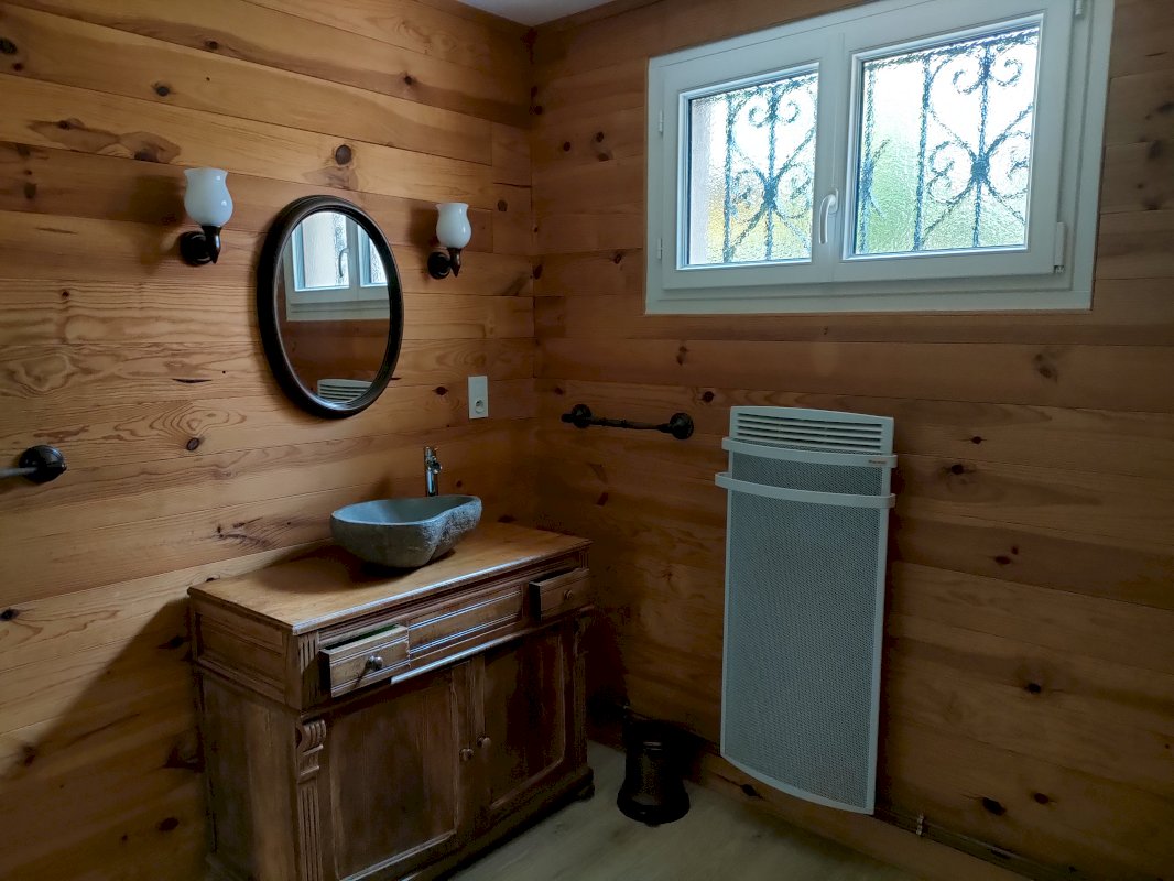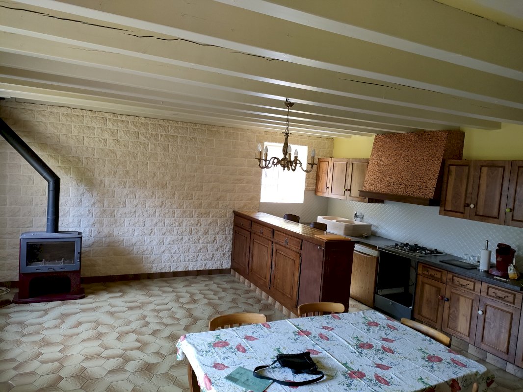 RdC: Pièce de vie avec poêle à bois, WC, salle d'eau, garage avec grenier communiquant.
