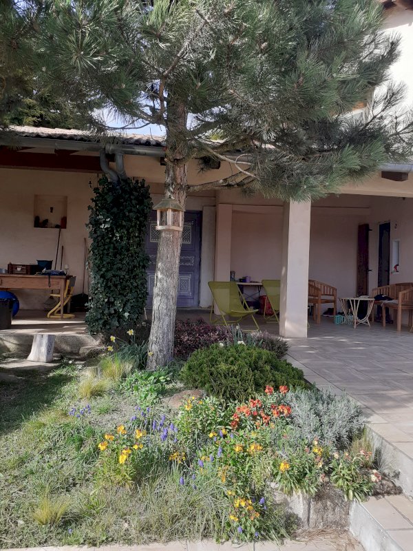 Grande loggia carrelée, Atelier adjacent avec mezzanine toilette sdb insert à bois. 3 chambre 5-6 couchages.