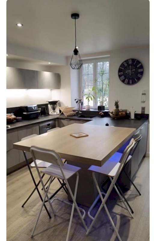 Maison située dans un hameau calme à 5 minutes de l’autoroute composée de 3 chambres, 1 hall avec rangements, 1 cuisine équipée, 1 buanderie, 1 salle de bains, mezzanine, 2 garages, terrain de 1150 m² clos.