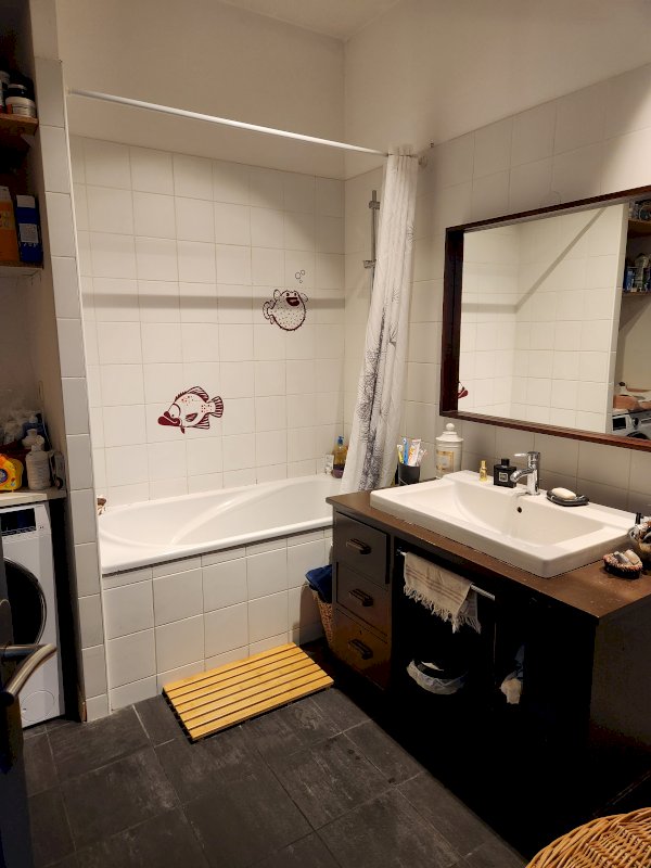 WC séparés, salle de bain confortable (7 m²) avec baignoire.