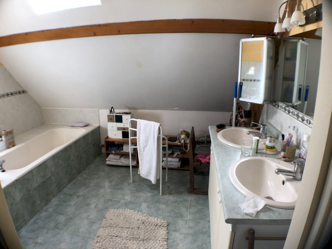 - Une vaste salle de bain avec Velux: baignoire, wc et lavabo