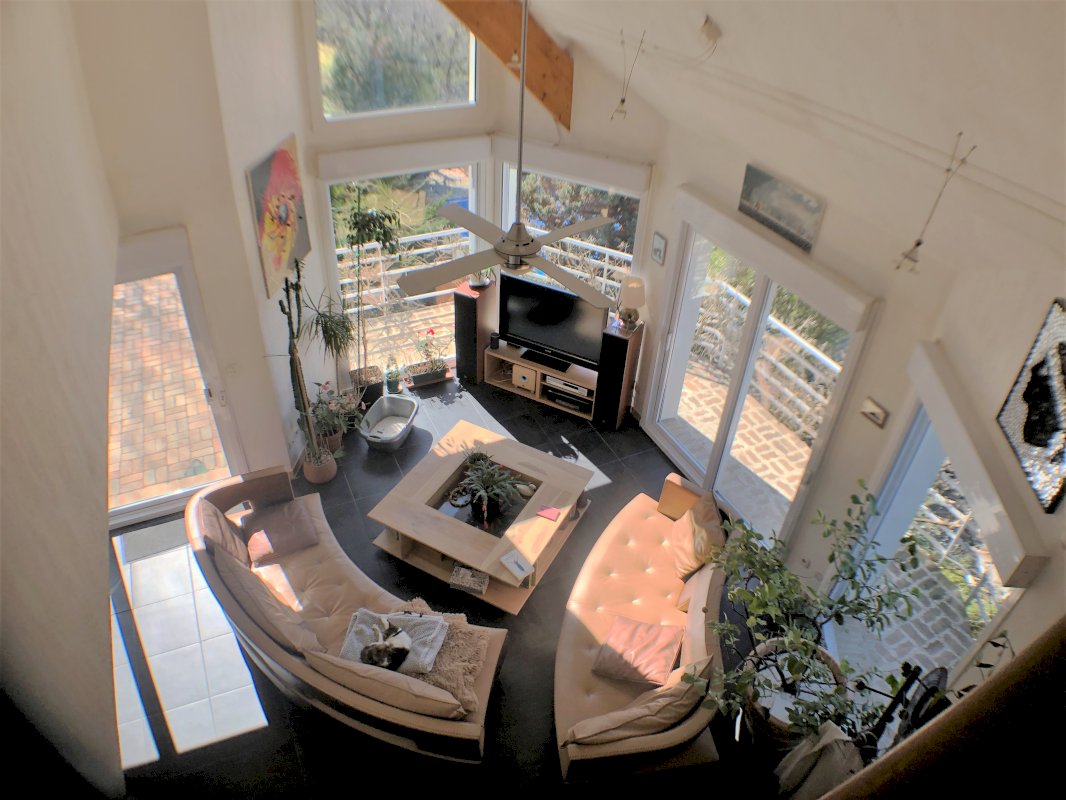 Construite en 1994 sur un terrain de 1270 m2, cette maison de 237 m² loi Carrez (surf totale 277 m²) avec piscine de 44 m² offre de vastes possibilités. Le terrain est aménagé en terrasses.