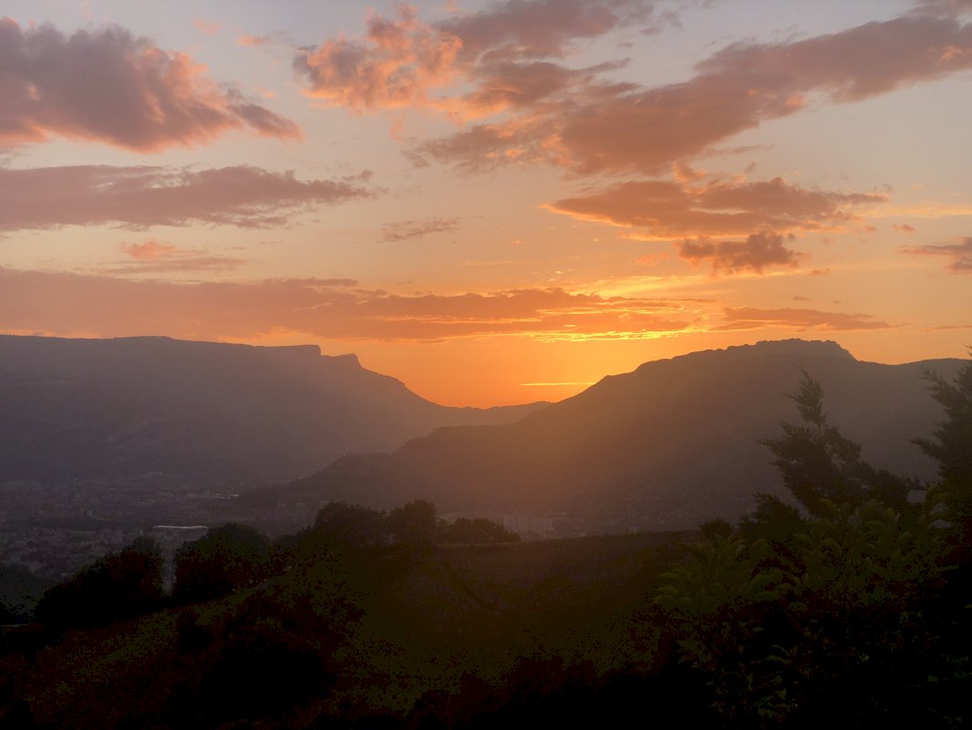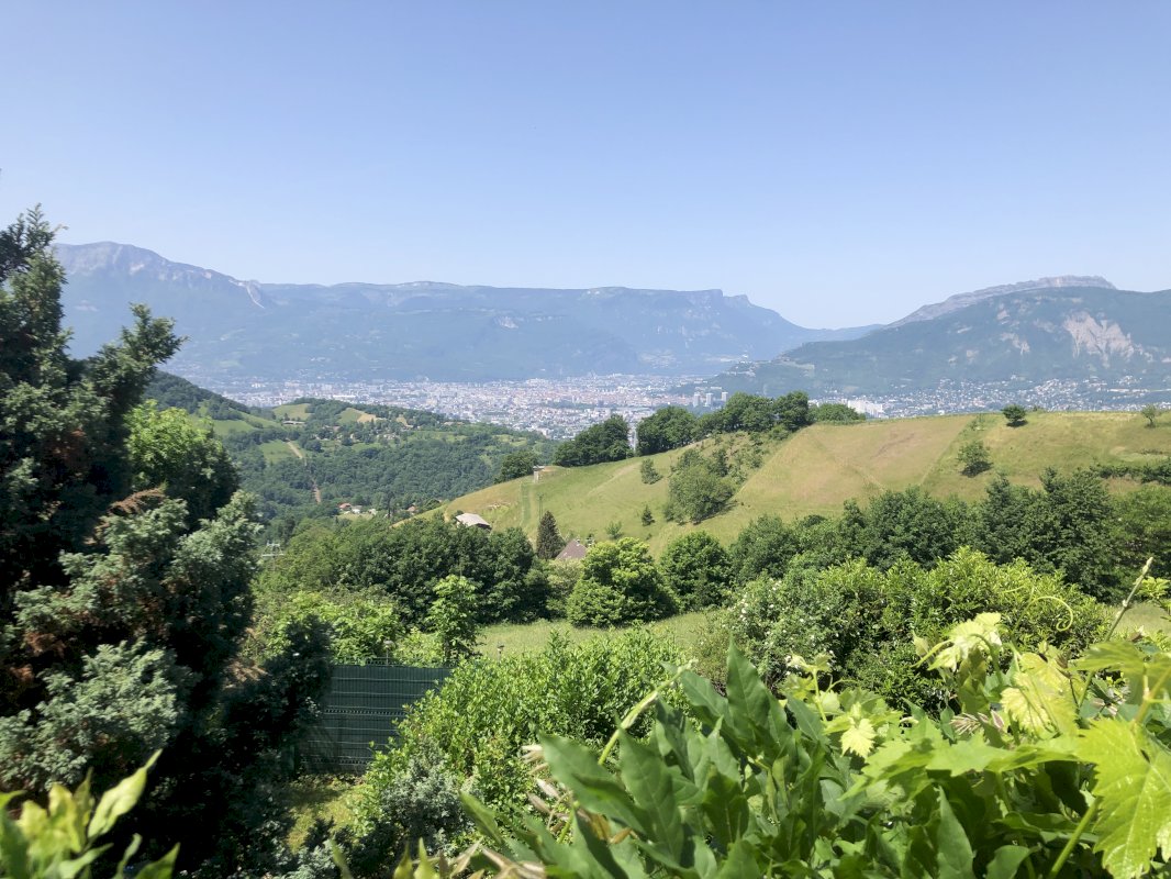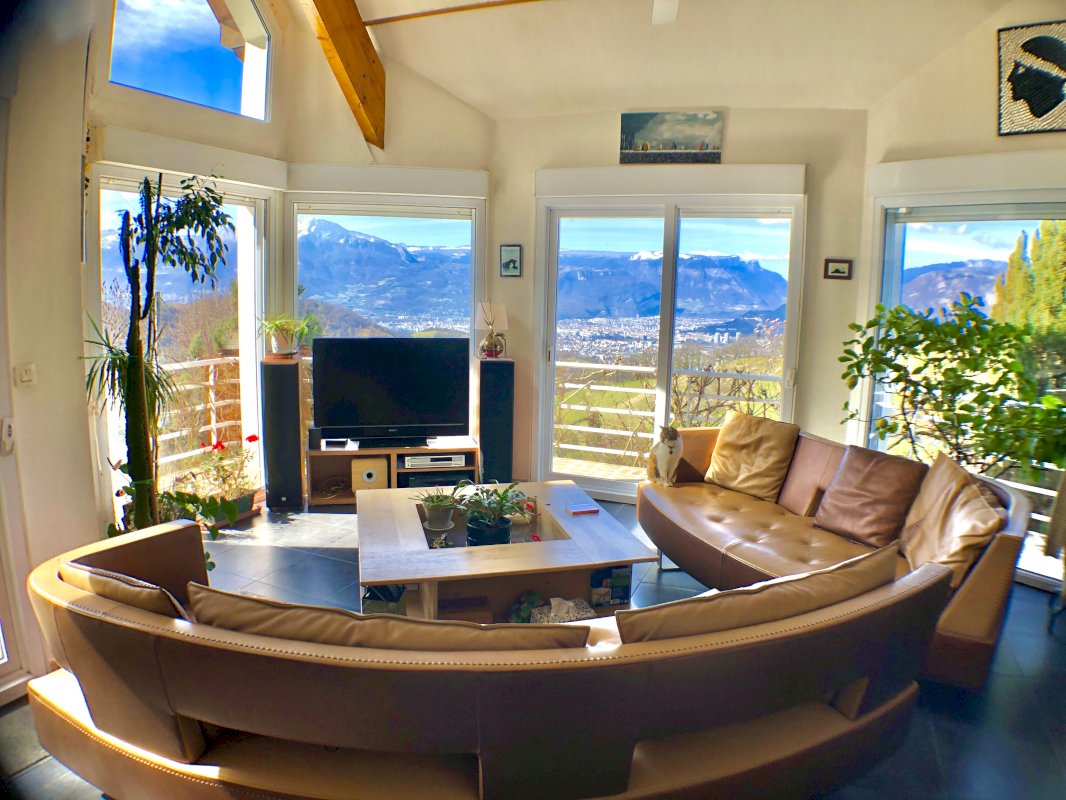 Cette villa possède une vue panoramique exceptionnelle sur le Vercors, l’agglomération Grenobloise et la Chartreuse avec une exposition Ouest dominante.