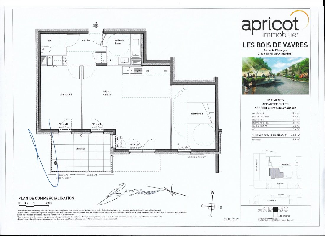 Superbe appartement lumineux de 3 pièces – 66,9 m² – Normes handicapé – Centre de Saint-Jean-de-Niost.