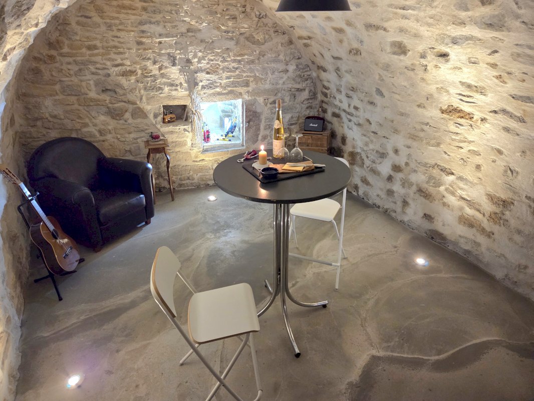 • Au rez de chaussée se trouve la pièce principale lumineuse de 25m² composée d’une cuisine équipée ouverte sur le salon, communiquant avec une cave restaurée d'environ 15m2 aménagée et équipée d’un point d’eau et d’un wc.
