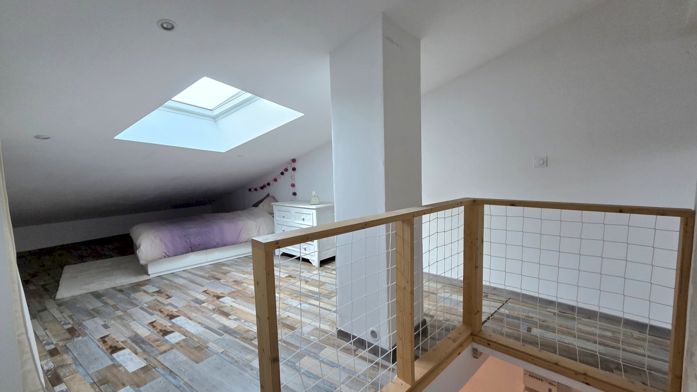 • Au premier étage se trouve une grande chambre, de 20m², spacieuse, lumineuse, équipée d'arrivée et d'évacuation d'eaux si aménagements supplémentaires souhaités.