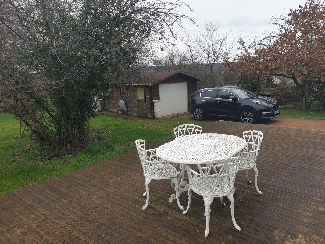 Belle maison de 130 m² avec 1 etage comprenant 4 chambres et salle d'eau wc et douche. Et au rez de chaussée grande salle à manger salon avec belle grande cuisine. Salle de bains comprenant douche baignoire et 2 vasques. Wc séparé. Grande terrasse de 80 m² surplombant un terrain de 1100 m² arboré. Un garage et cabane de jardin pour tout l'outillage.