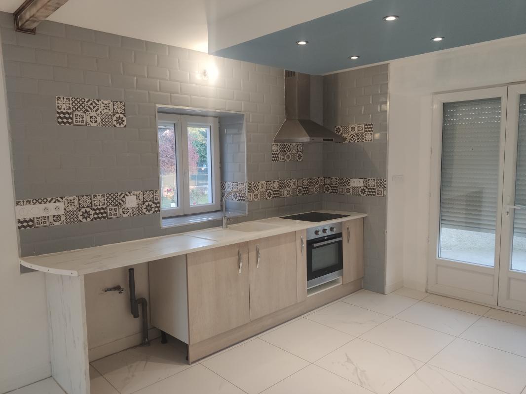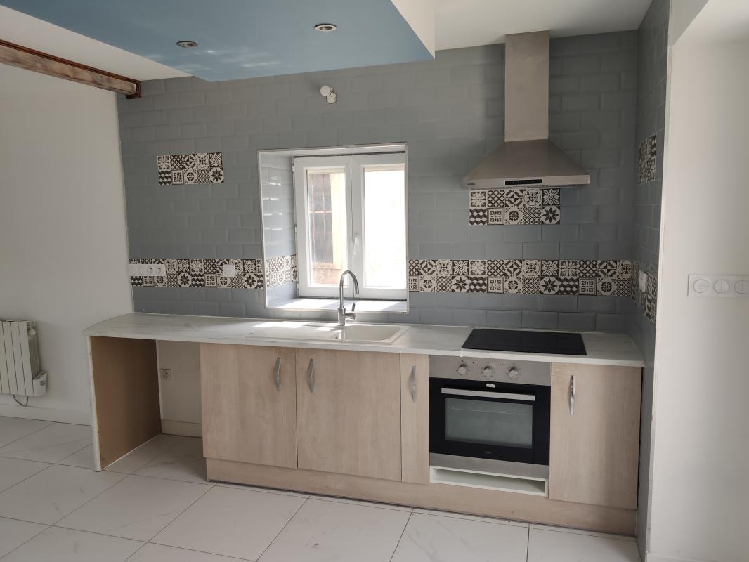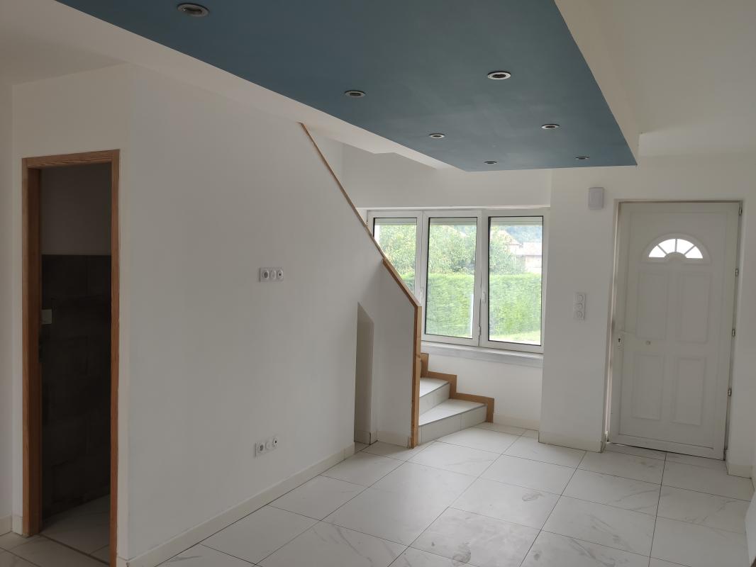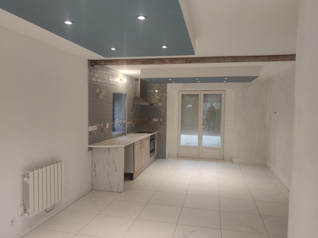 CHÂBONS 38690. Appartement atypique type T5 de 74 m² (Loi Carrez). Surface au sol de 87 m² répartis sur trois niveaux. (c'est une maison divisée en 2 appartements triplex). L’entrée donne directement sur la pièce de vie comprenant une cuisine ouverte aménagé, porte fenêtre donnant sur balcon avec escalier d’accès à l'extérieur, où vous bénéficiez d'une cour fermée par portail qui peut accueillir 2 véhicules + grande cave.