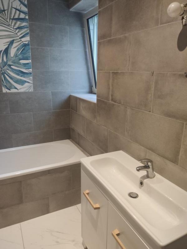 Au premier étage, 2 chambres, salle de bains, baignoire, WC.