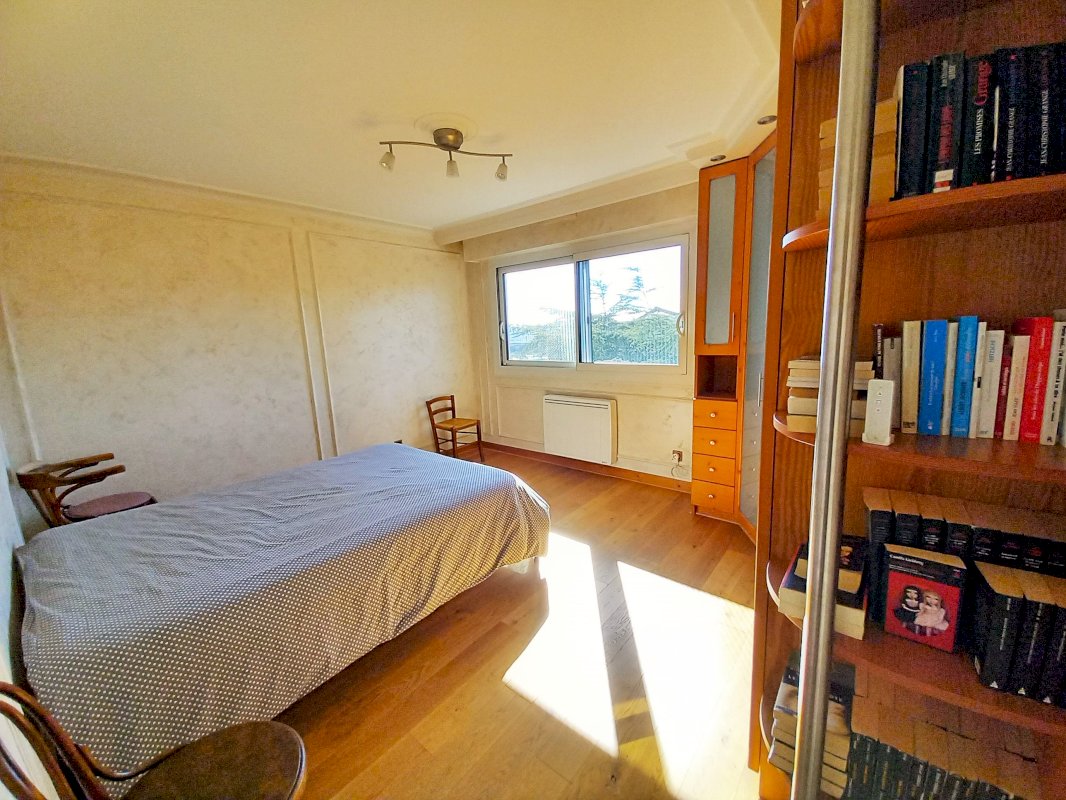 Une grande chambre parentale avec parquet neuf, dressing et salle de bains.