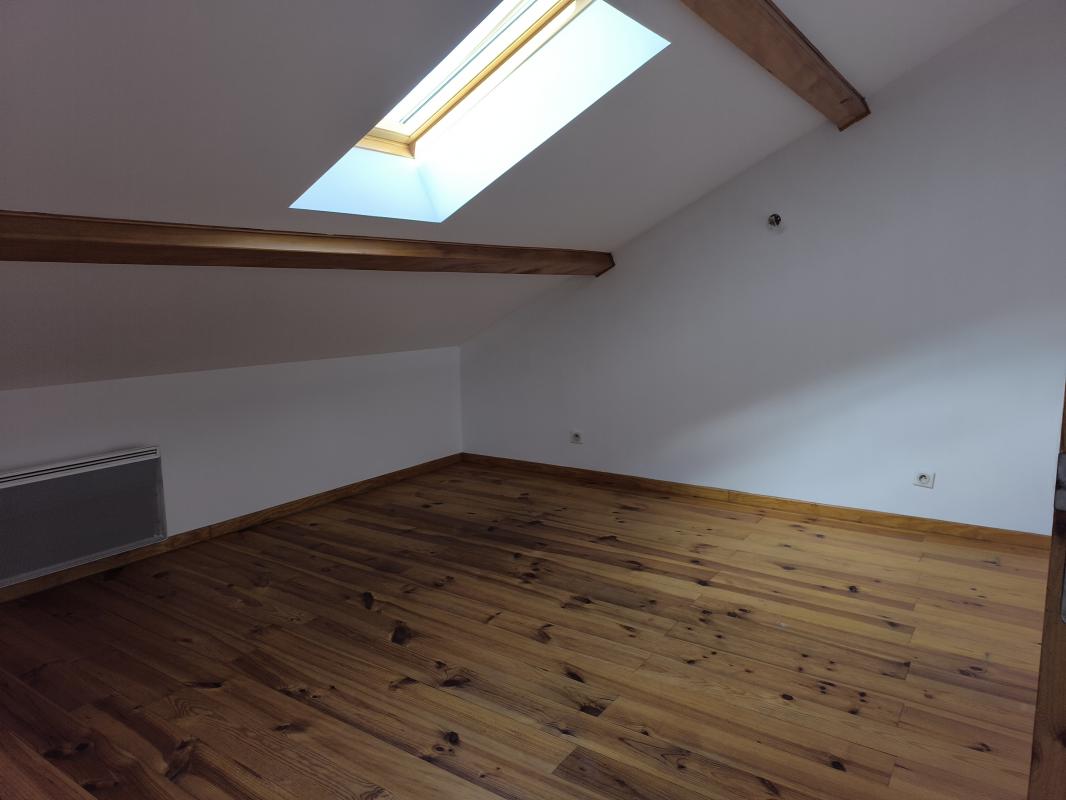 Au 2ème étage : un espace sous le toit avec charpente traditionnelle apparente composé d'une grande salle avec velux de 46m² dont 23m² loi carrez, d'une chambre avec velux de 16m² dont 9m² loi carrez et d'un bureau de 7.5m².