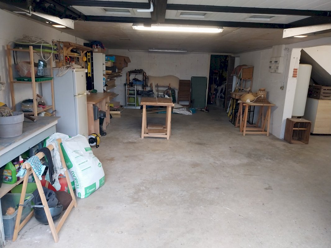 Au sous-sol (isolaton par le plafond) : un grand garage pour rentrer 2 voitures (54m²), portail électrique, établi, coin rangement (dressing, placards). Une cave (14m²) avec de nombreuses étagères de rangement.