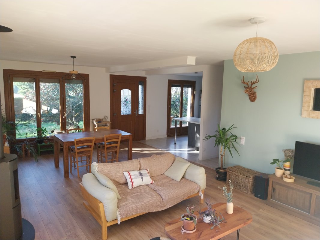 - Le salon (45m²) a été entièrement refait en 2024 (peinture, parquet, réisolation d'un mur en lambris par de la laine de bois) un poêle à bois neuf est installé.