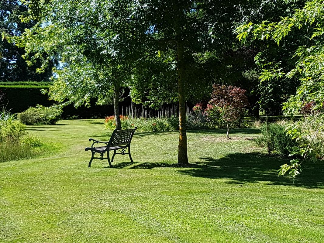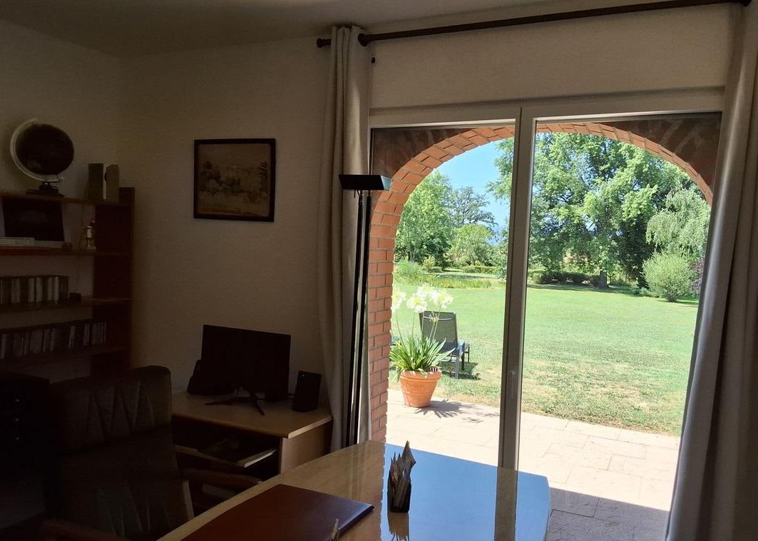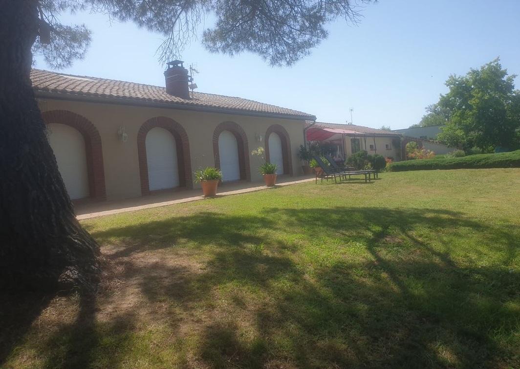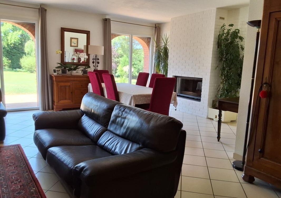 En campagne, au calme, maison de plain-pied construite en 1985 sur le modèle d'un ancien séchoir à briques, 5 pièces plus dépendances aménageables, grand jardin arboré et clos, piscine, 2 garages.